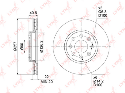 Диск тормозной передний вентилируемый LYNXauto BN1436