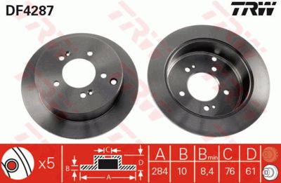 Диск тормозной задний (артикул DF4287) — важная и надёжная деталь автомобиля относящаяся к категории Тормозная система. Производится под брендом TRW, известным качеством и долговечностью комплектующих.