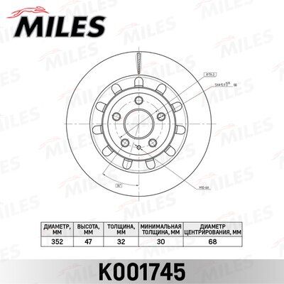 Диск тормозной передний Miles K201745 K201745
