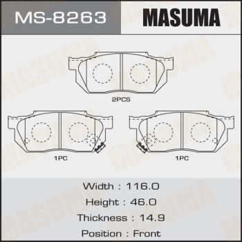 Колодки тормозные передние (артикул MS8263) — важная и надёжная деталь автомобиля относящаяся к категории Тормозная система. Производится под брендом Masuma, известным качеством и долговечностью комплектующих.