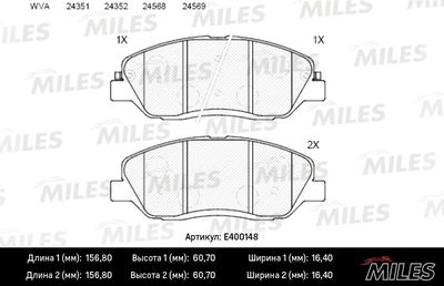 Колодки тормозные передние Miles E400148