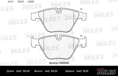 Колодки тормозные передние (артикул E400302) — важная и надёжная деталь автомобиля относящаяся к категории Тормозная система. Производится под брендом Miles, известным качеством и долговечностью комплектующих.