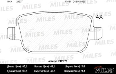 Колодки тормозные задние (артикул E410278) — важная и надёжная деталь автомобиля относящаяся к категории Тормозная система. Производится под брендом Miles, известным качеством и долговечностью комплектующих.