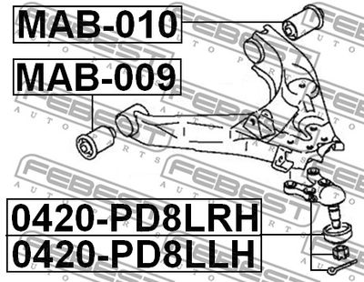 Сайлентблок заднего нижнего рычага (артикул MAB010) — важная и надёжная деталь автомобиля относящаяся к категории Ходовая часть. Производится под брендом FEBEST, известным качеством и долговечностью комплектующих.