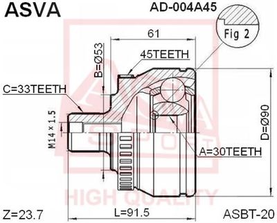 ШРУС наружный (артикул AD004A45) — важная и надёжная деталь автомобиля относящаяся к категории Трансмиссия. Производится под брендом ASVA, известным качеством и долговечностью комплектующих.