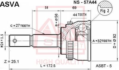 ШРУС наружный (артикул NS57A44) — важная и надёжная деталь автомобиля относящаяся к категории Трансмиссия. Производится под брендом ASVA, известным качеством и долговечностью комплектующих.