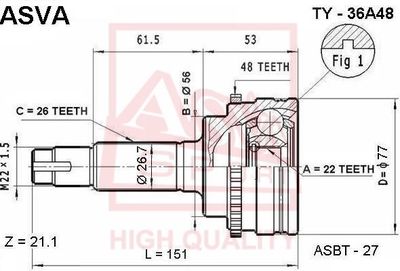 ШРУС наружный (артикул TY36A48) — важная и надёжная деталь автомобиля относящаяся к категории Трансмиссия. Производится под брендом ASVA, известным качеством и долговечностью комплектующих.