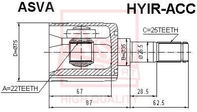 ШРУС внутренний правый (артикул HYIRACC) — важная и надёжная деталь автомобиля относящаяся к категории Трансмиссия. Производится под брендом ASVA, известным качеством и долговечностью комплектующих.